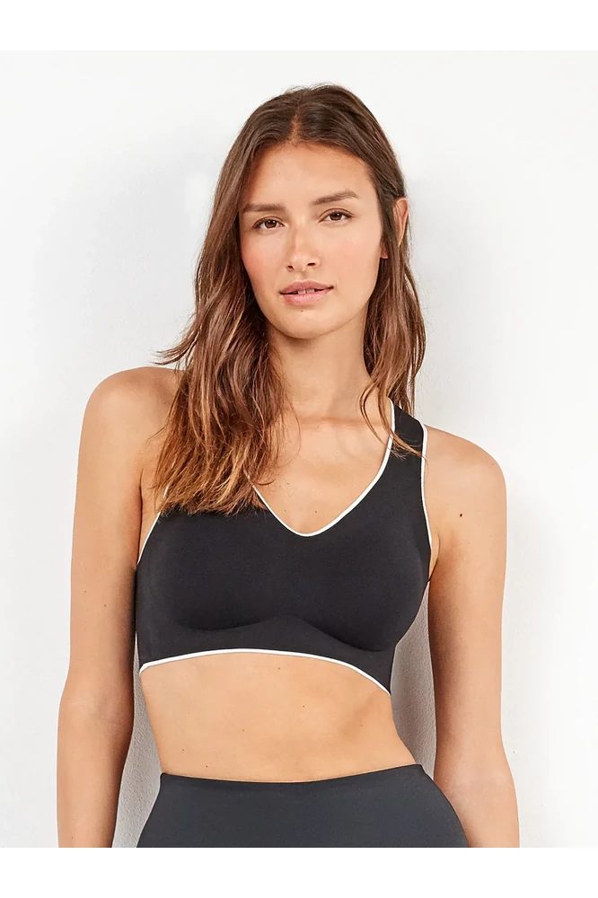 Merevítő nélküli, vékony szivacsos, varrás nélküli, ragasztott kidolgozással.